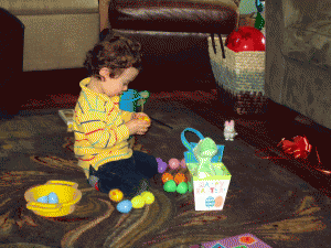 He then enjoyed his eggs and other gifts for most of the afternoon.