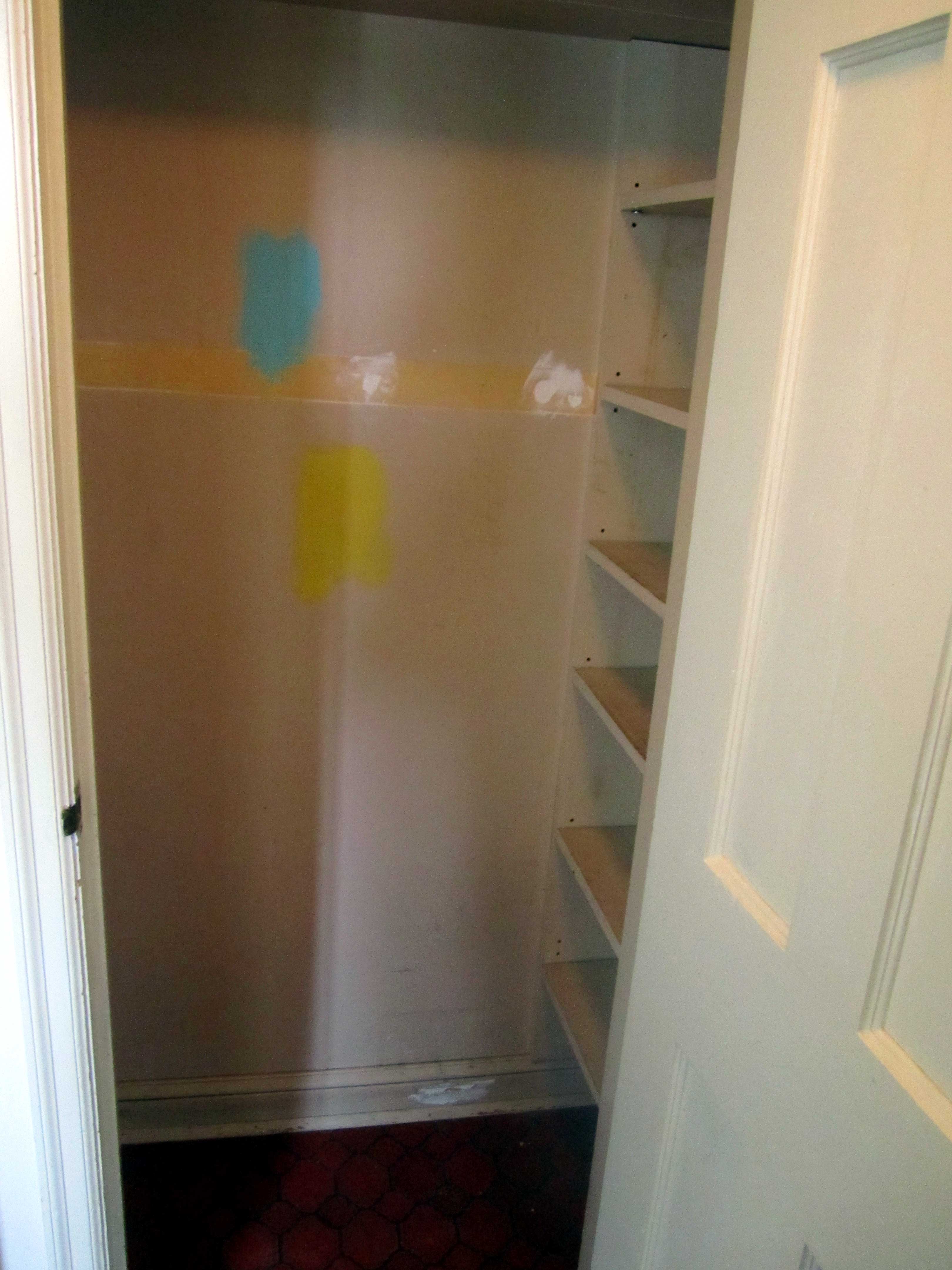 There was a space for a closet rod at the top – underneath that shelf. This could have been a secondary closet (we have another closet very close to this one)? There was a lot of wasted space for us. There was a top shelf and some shelves on the side. I thought horizontal shelves would be much better.