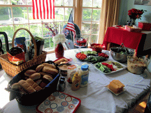All the food wasn’t out yet in this pic – like the main dishes for example. We served grilled hot dogs, brats, hamburgers and chicken, blueberry spinach salad, orzo salad, veggies and dip, chips, fruit, a family recipe just referred to as “chip dip.” My sister in law also brought a pasta salad.