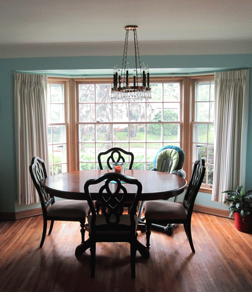 I LOVE it. As soon as it was up, the entire feel of the room changed. Plus I am finding that I like the filtered light a lot more. The other light was too bright, but this shade tempers it just enough. Also now when we have parties I can push the table back to the window so that there is more room for people to mingle in front.